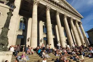 Dank der freien Lage wird die Glyptothek am Königsplatz fast den ganzen Tag über von der Sonne verwöhnt: Besonders in den Abendstunden erstrahlt die Fassade des Museums im goldenen Licht und die Münchner*innen lassen hier den Tag ausklingen - mit einem Glaserl Wein oder einem Bierchen genießen sie die Aussicht auf die historische Kulisse der Propyläen und der Antikensammlungen.