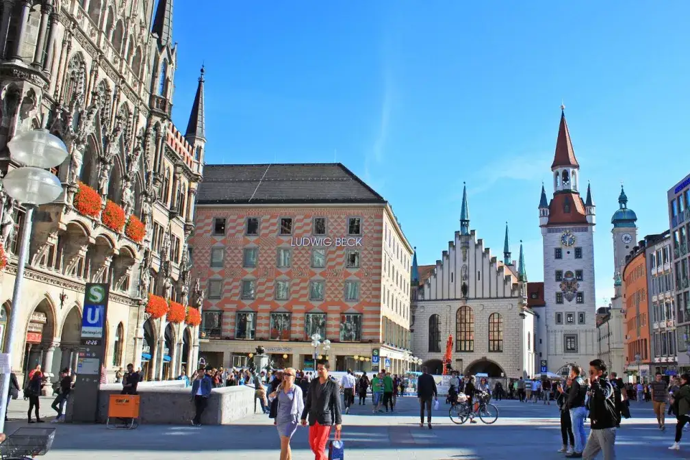 - Rund um den Marienplatz gibt es Geschäfte und Gastronomie, hier beginnt die Fußgängerzone und es sind nur wenige Schritte zum Viktualienmarkt und zur Frauenkirche